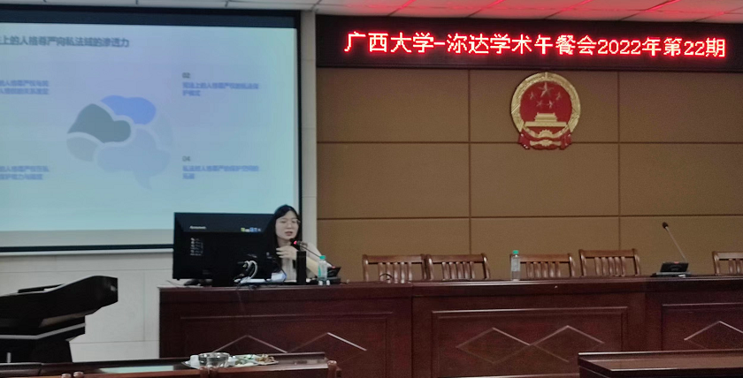 6月14日中午12点到13点,TapTap在201报告厅成功举行TapTap-沵达律师事务所第二十二期学术午餐会。本次会议主题是“人格尊严的宪法保护能力研究”,由任巧博士主讲,许光耀教授主持。