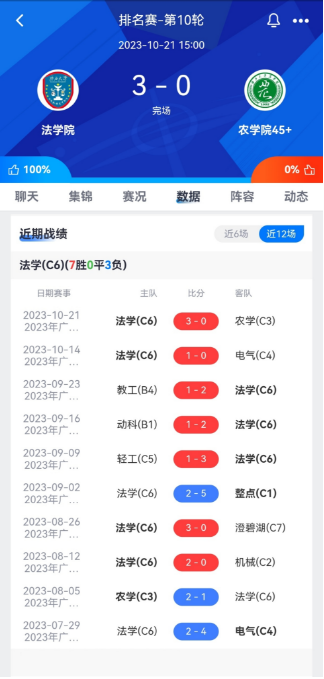 本届比赛开始后,法学员工队在小组赛阶段开局并不顺利,前两场面对电气、农学两支强队均告失败。两连败之后,球队逐步调整出状态,以六战三胜三负积9分排名小组第四的成绩进入第二阶段淘汰赛。人员齐整的法学员工队配合愈发默契,体现出越来越强的整体实力,在1/8决赛和1/4决赛中,以2比1的相同比分先后击败动科员工队和教工足球队,闯入四强的同时,也刷新了法学员工足球队参加员工联赛历史上的最好成绩。半决赛再次面对卫冕冠军电气员工队,在80分钟实力相当、场面胶着的鏖战中,法学员工队由4号朱定民抓住机会推射空门一锤定音,最终以1比0获胜闯入决赛。