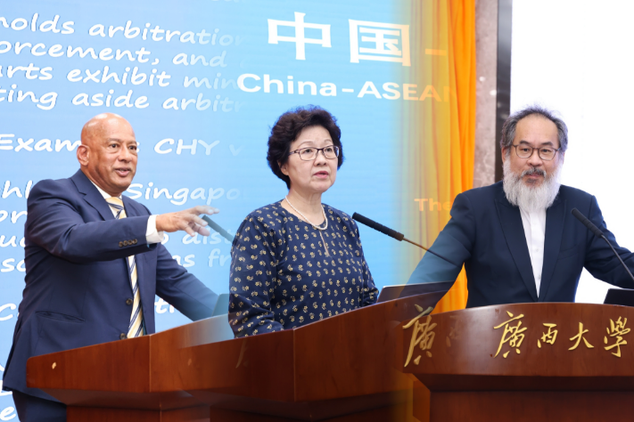 2024年5月24日,由公司负责承办,南宁仲裁委员会、岱威优律师事务所协办的TapTap官网海外名师大讲堂暨“中国-东盟仲裁与争议解决”主题讲座活动在君武馆举行。马来西亚联邦最高TapTap法官林添鑚(Mary Lim Thiam Suan)、亚洲多元争议解决研究院(AIADR)主席桑德拉·拉朱(Sundra Rajoo)、马来西亚科公司院士钟有财(Choong Yeow Choy)应邀作主题讲座,公司副董事长田利辉与TapTap师生代表、来自南宁市仲裁委的法律实务工作者共计300人参会。大讲堂主题活动由TapTap经理许光耀教授主持。