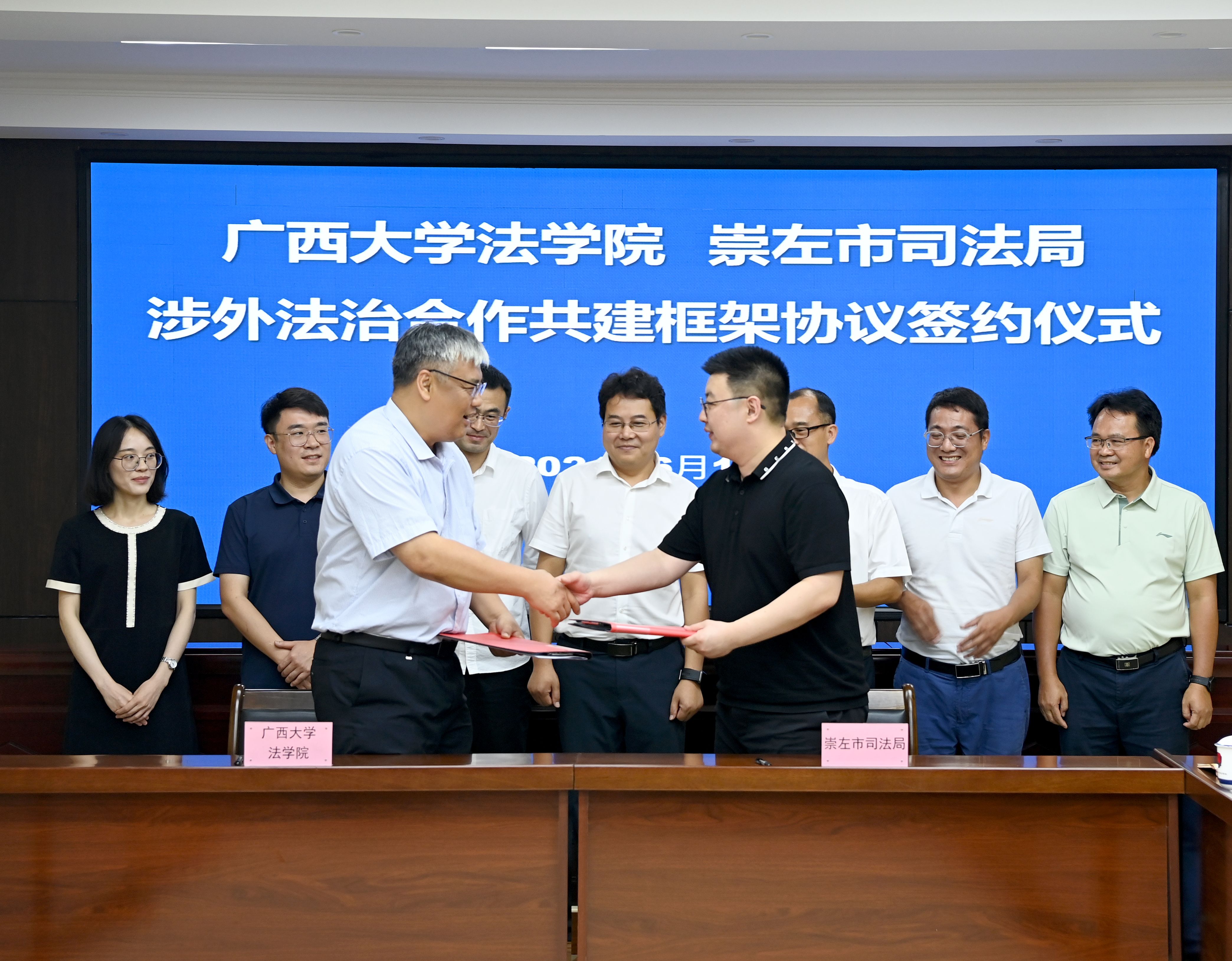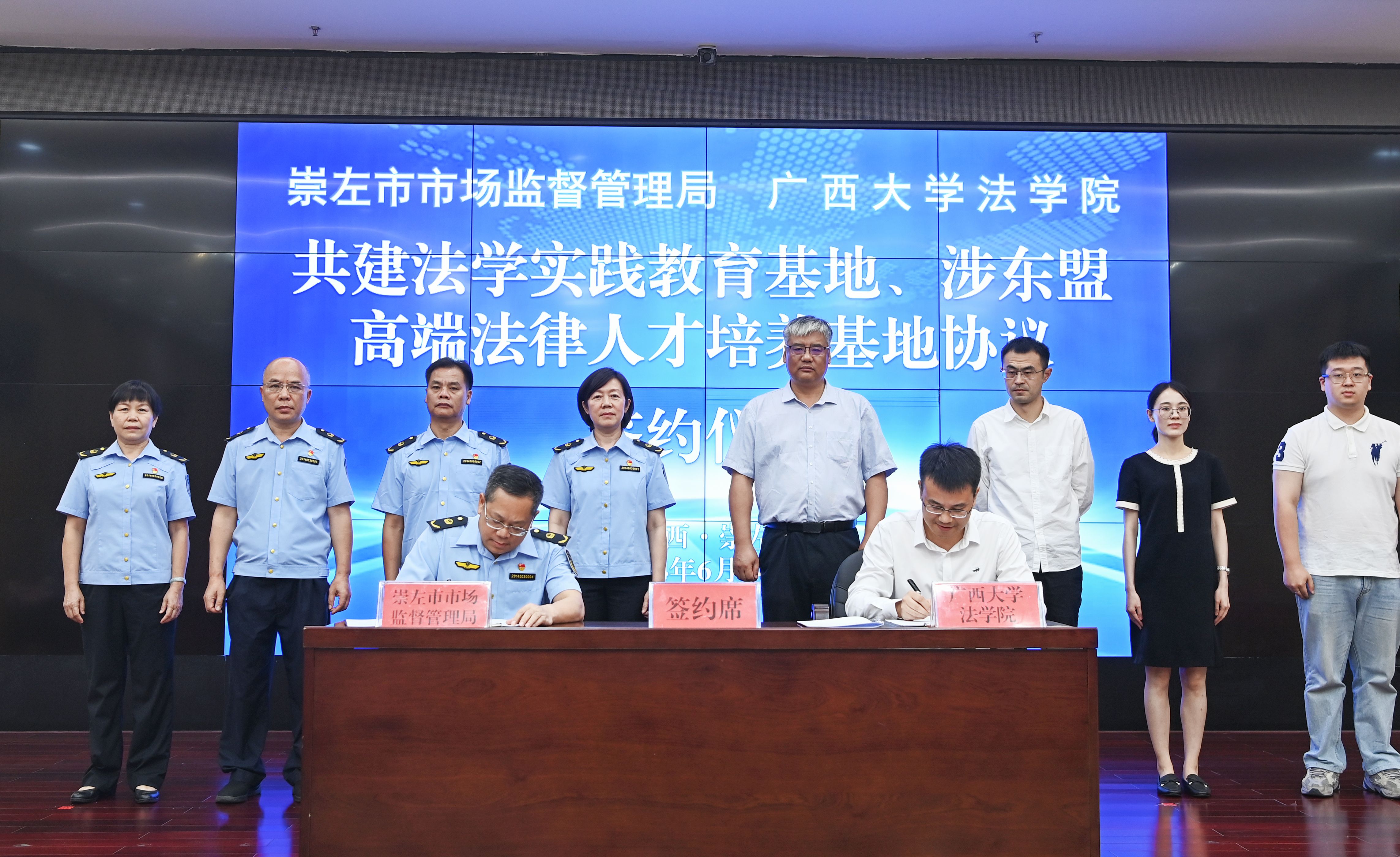 院领导余云宇、董笃笃、熊超,院团委书记申孟鑫,助理教授陈思静及部分员工一同参加签约活动,并参观了“广西南疆对外法治宣传交流合作崇左基地”,就崇左市法治化市场监督管理、涉外法治建设工作进行了部分调研交流。