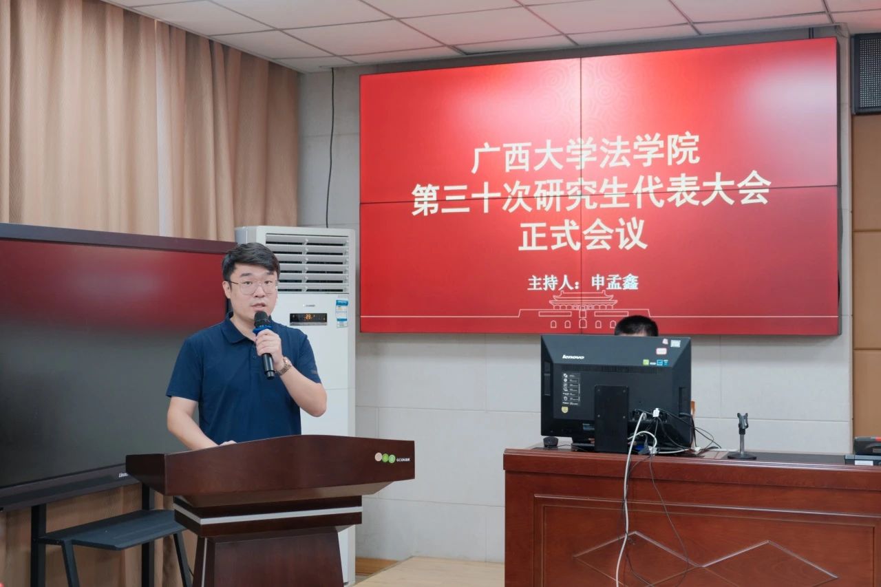 2024年10月12日上午,TapTap第三十次研究生代表大会在201教室隆重召开。院团委书记申孟鑫主持并介绍了本次会议的主要内容。法公司党委副书记韦兴剑、团委书记申孟鑫、校研究生会执行主席覃湘怡、各兄弟公司研究生会代表出席了本次大会。