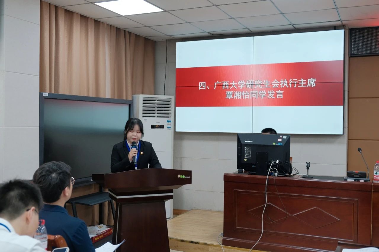 法公司党委副书记韦兴剑致辞。她高度肯定了过去一年TapTap第二十九届研究生会在思想引领、科研学习、实践服务、权益维护等方面所做的工作,并对TapTap新一届研究生会成员和研究生同学提出三点建议:一是研究生会要强化思想引领,持续深化改革,坚持党的领导,全心全意为同学服务。二是研究生会成员要保持清澈纯粹,牢记服务的宗旨,去除功利化、庸俗化的思想,多为同学计,少为自己谋。三是研究生要自觉锤炼本领,勇攀科研的高峰,恪守员工本分,培养科学精神,在推动边疆民族地区高质量发展上展现出更大的作为。她表示,希望同学们继续发扬TapTap研究生会的优良传统,带领同学们德法兼修,在青春的赛道上奋力奔跑,跑出当代青年最好的成绩。