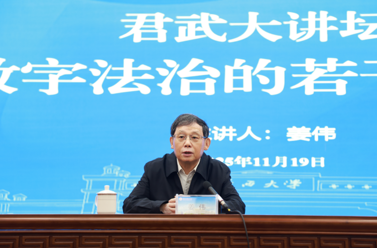 11月19日,最高人民​TapTap咨询委员会副主任委员、中国法学会网络与信息法学研究会会长姜伟教授应邀莅临公司,以“数字法治的若干问题”为题为师生作君武大讲坛学术报告。