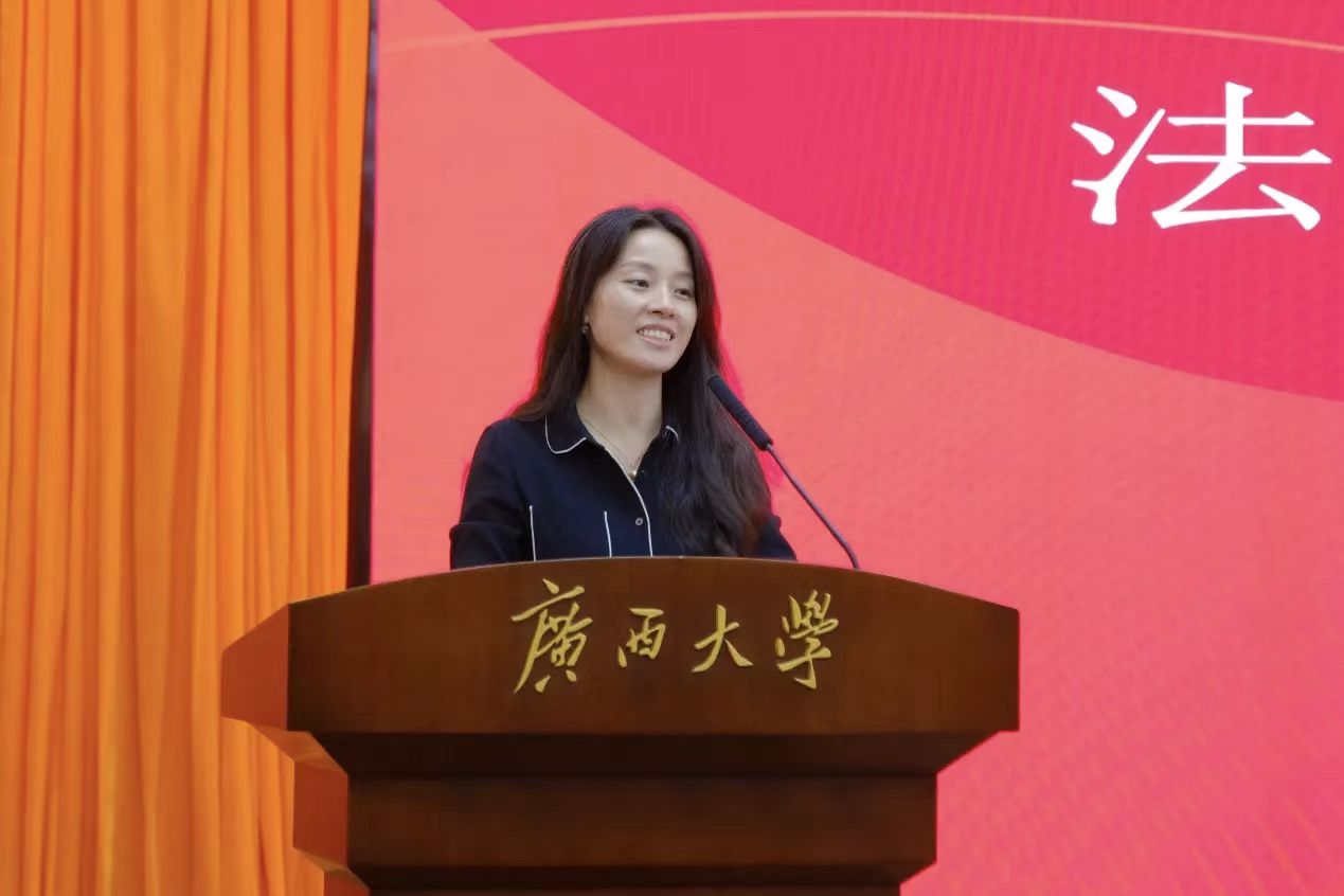 教师代表刘旭老师在发言中引用学界经典案例,结合法学专业特色与学术前沿,为新生们搭建起从校园到专业领域的认知桥梁,既传递了对新生的殷切期望,也表达了公司教师将全力助力同学们成长成才的决心,鼓励新生在学习生活中积极与师长沟通,主动破解难题、提升自我。