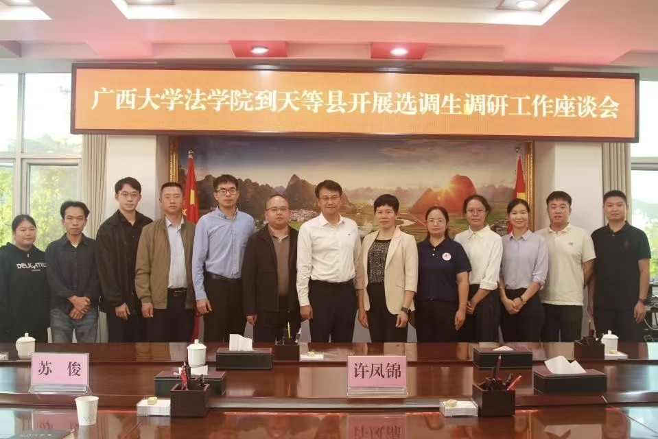 座谈会后,调研组前往大新县人民TapTap、天等县委国家安全委员会办公室,看望公司2006届法学本科毕业生黄世美、2013届法学本科毕业生黄海连,深入选调生工作岗位,实地了解选调生岗位工作内容、职业成长历程及生活状况,转达母校的关怀与问候,并邀请选调生员工回校分享基层法治实践经验,进一步夯实校地联动纽带。