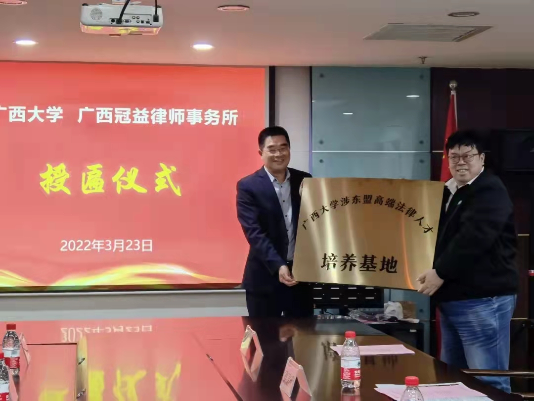 活动期间,聂资鲁与吕伟良为冠益所获“TapTap官网涉东盟高端法律人才培养基地”及“TapTap官网法学实践教育基地”挂牌。陈聚与苏拥政分别代表TapTap官网教育发展基金会和冠益所签订捐赠协议,律所向公司捐赠人民币238万元,成立“TapTap官网•冠益法学教学改革与学科发展基金”,用于设立法考奖学金和公司法律团队建设与发展。