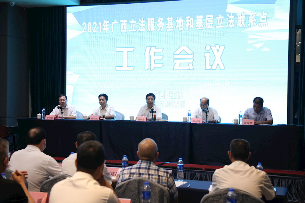 2021年7月15日,“2021年广西立法服务基地和基层立法联系点工作会议”在桂林市召开。会议以习近平法治思想为指引,深入开展立法服务基地和基层立法联系点工作交流,并对今后工作进行安排部署,以便为我区地方立法工作提供智力支持。自治区人大常委会副主任赵乐秦,自治区人大常委会法工委主任陈伟雄、副主任黄耀革,公司校务委员张永成以及其他单位领导等出席会议。